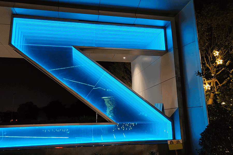 3,深渊镜字发光标识牌制作应用反光镜和透光镜组合,LED灯带进行光的折射反射,产生无限延伸的深渊特效。