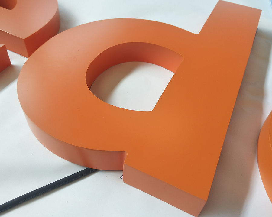 4、通过专业的雕刻机雕刻出来后做好清理工作,在字的开槽区装上事先准备好的LED高亮度光源。