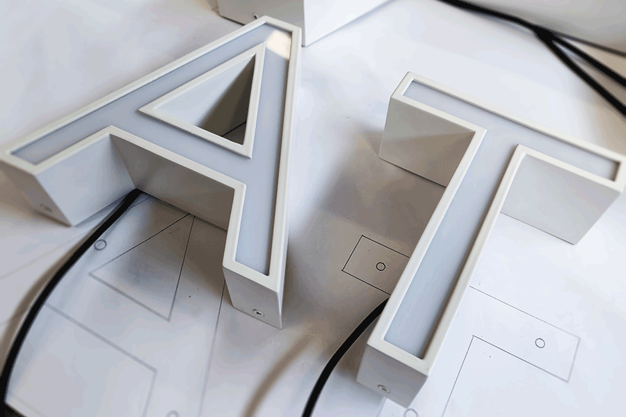 1,镂空字制作使用防腐蚀材质与金属板材,亚克力作为发光面板,具有良好的透光性和耐候性。