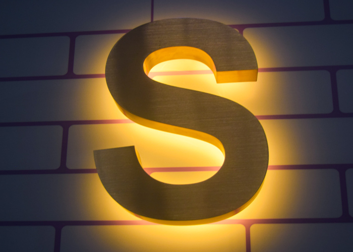 以不锈钢板为字壳,正面冲孔,采用氩弧焊焊接,打磨抛光后喷汽车漆,装上led外露防水灯串。适合大型商场、企业以及房产等商业场所的户外广告牌。