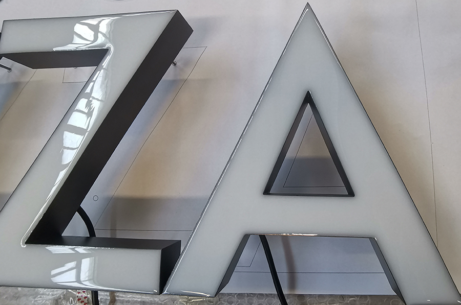所有部件组装的过程将装上LED模组的PVC板放进制作好的字壳内,然后放上透明亚克力隔板用玻璃胶水固定好,拿到温控室进行平整摆放,然后用调配好的树脂胶水倒入平整摆放的字槽中。完成树脂浇注。